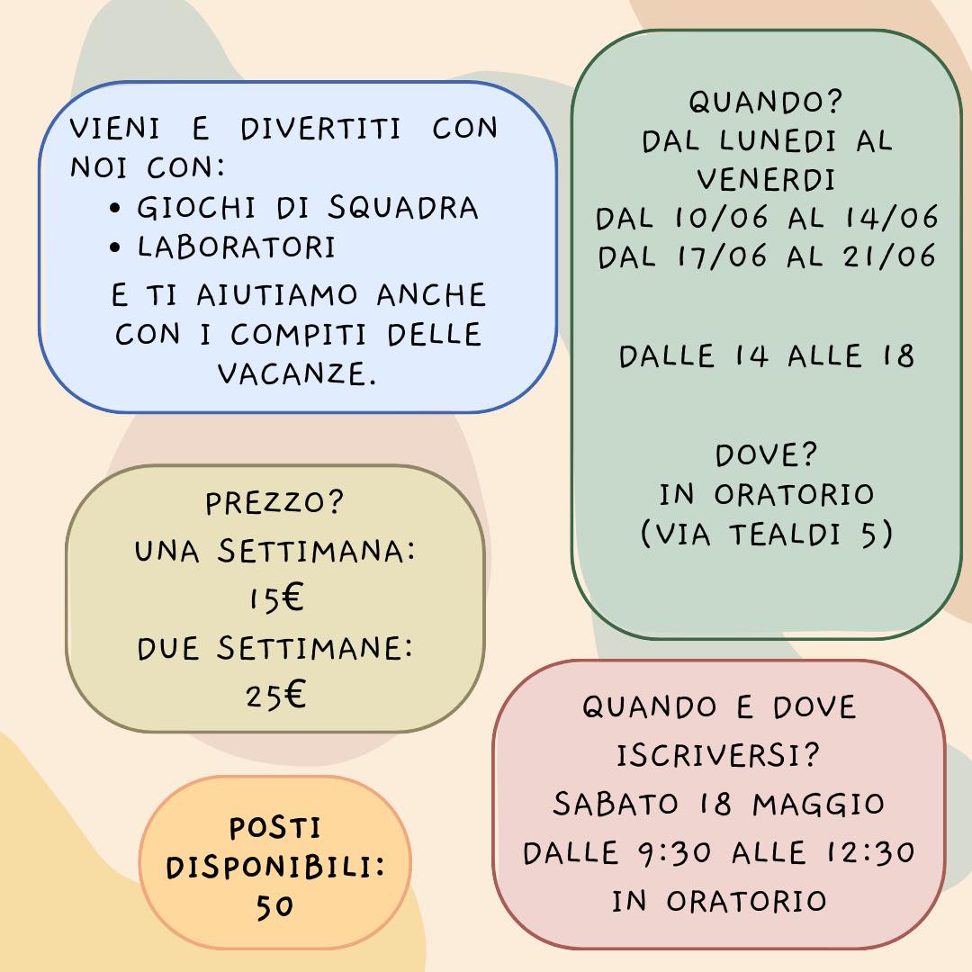 ORATORIO ESTIVO “LIGHT”: dai 6 ai 13 anni: dal 10 al 21 giugno; dalle 14:00 alle 18:00; (contattare per verificare disponibilità)