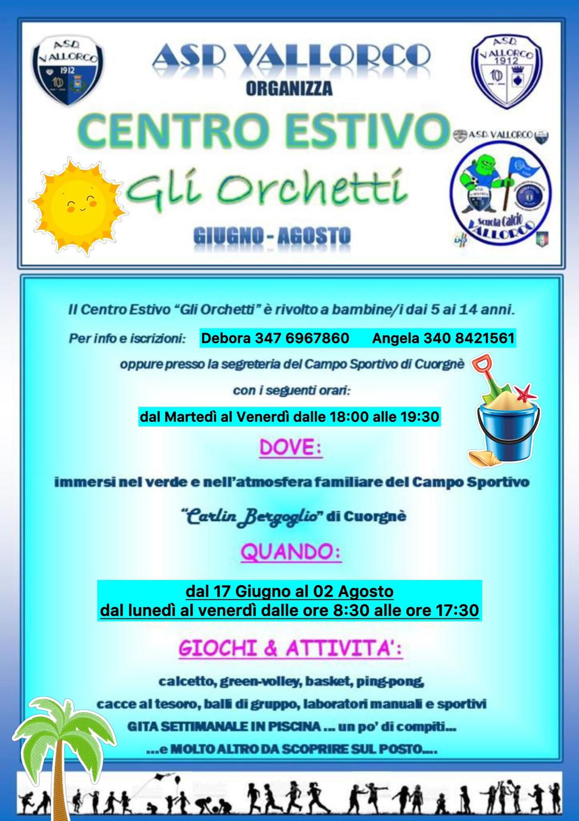 VALLORCO “GLI ORCHETTI”: dai 5 ai 14 anni; dal 17 giugno al 2 agosto; dalle 8,30 alle 17,30