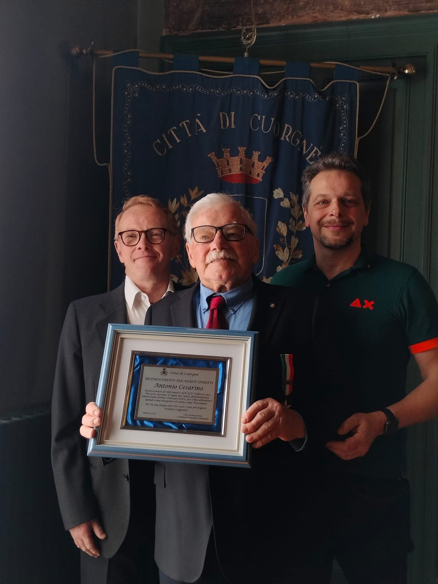 Nella mattinata di venerdì 27 marzo 2026, Antonio Cesarino è stato premiato con una targa per meriti sportivi: alla cerimonia erano presenti il Sindaco Giovanna Cresto, il Vicesindaco e Assessore allo Sport Vanni Crisapulli, insieme agli Assessori Laura Ronchietto e Lara Calanni e al Consigliere Bruno Bruschi. L’Amministrazione comunale ha voluto rendere omaggio a un uomo che ha fatto dello sport una vera e propria missione educativa, lasciando un segno profondo nella comunità.