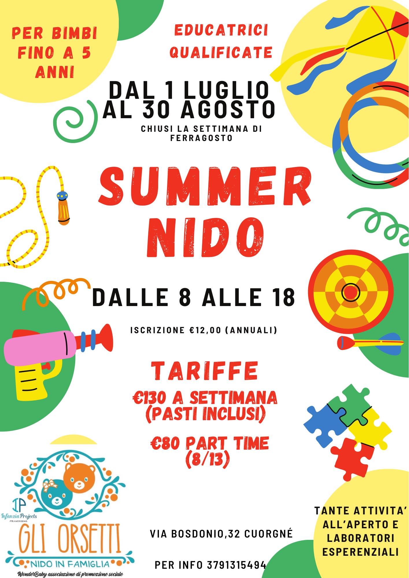 GLI ORSETTI: dai 6 mesi ai 5 anni; dal 1° luglio al 30 agosto (chiusi settimana di Ferragosto); dalle 8:00 alle 18:00