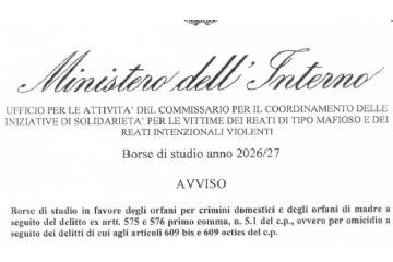 Avviso Borse di studio in favore degli orfani per crimini domestici e degli orfani di madre a seguito del delitto ex artt.575 e 576 primo comma, n. 5.1 del c...