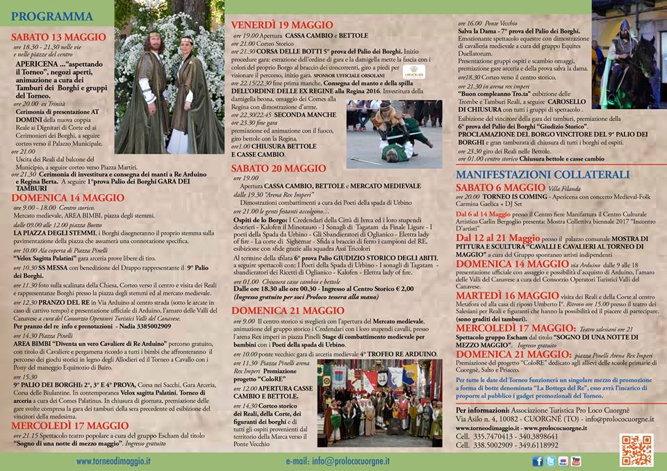 Dal 13 al 21 maggio 2017 ritorna a Cuorgnè il "Torneo di Maggio alla Corte di Re Arduino" giunto alla sua 29° edizione.