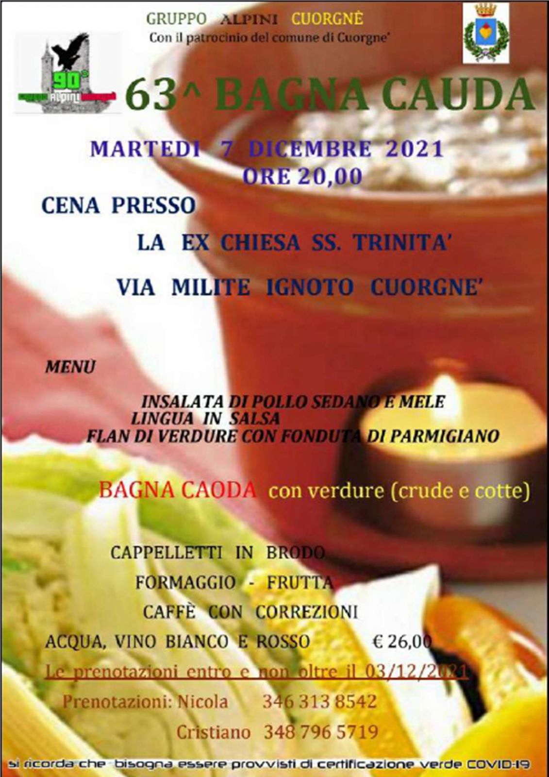 Il 07/12/2021 si terrà la consueta "Bagna Caoda" organizzata dal Gruppo Alpini di Cuorgnè.
