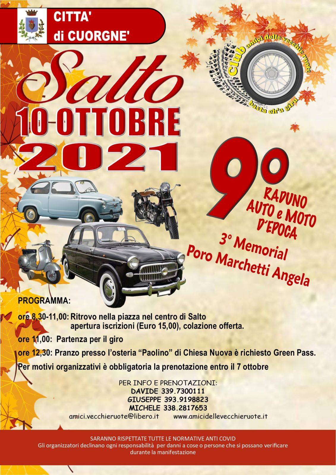 Domenica 10 ottobre in piazza I° Maggio fr. Salto, si terrà il 9° Raduno d'Auto e Moto d'Epoca a cura dell' Ass.ne Amici delle Vecchie Ruote.