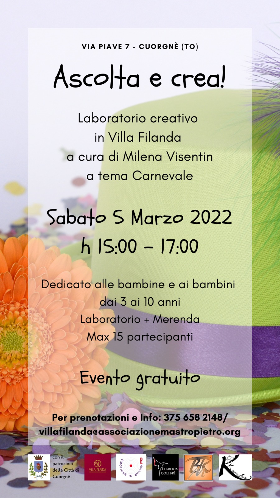 Laboratorio creativo in Villa Filanda a cura di Milena Visentin a tema Carnevale