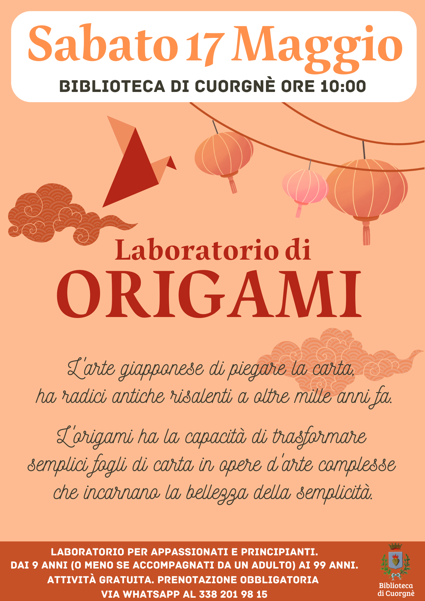 Sabato 17 maggio 2025 dalle ore 10, presso la Biblioteca di Cuorgné: laboratorio di origami!