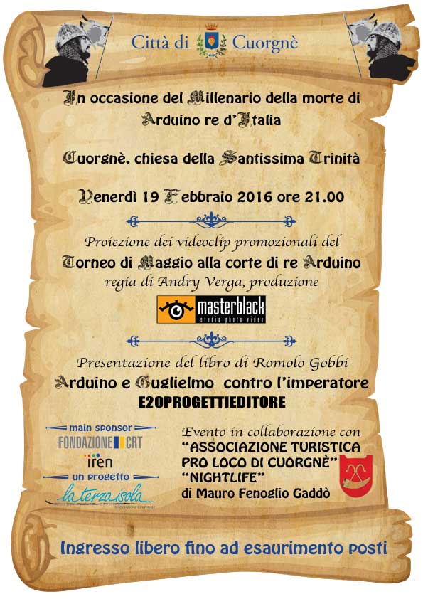 proiezione del videoclip "Torneo di Maggio alla corte di Re Arduino" presso l'ex Chiesa SS. Trinità - venerdì 19 febbraio 2016 ore 21,00